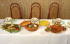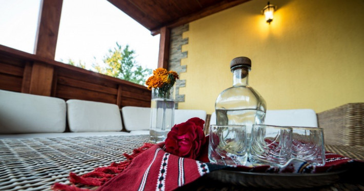 completa, in pret fiind incluse si apa plata si tuica facuta din floare de salcam);