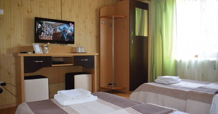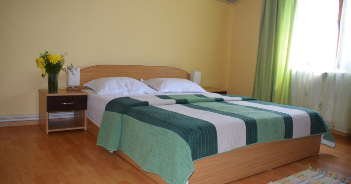 Cazare: Oaspetii nostri au la dispozitie 7 camere cu baie proprie, LCD cu antena satelit, aer conditionat si incalzire centrala