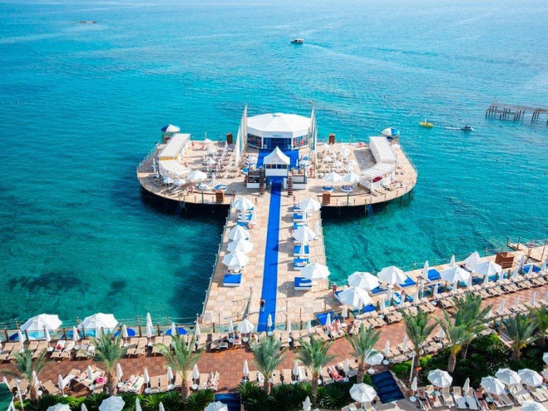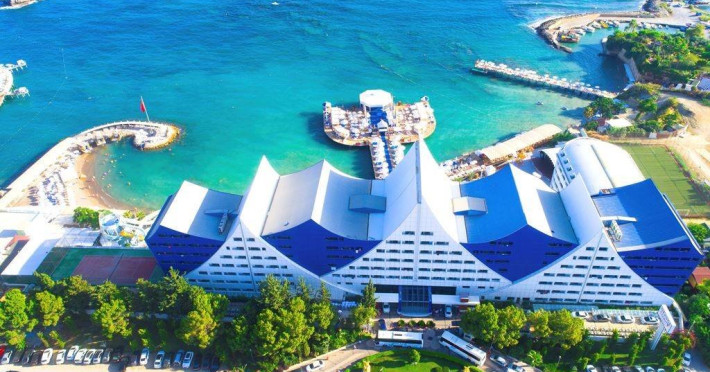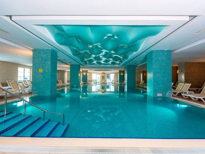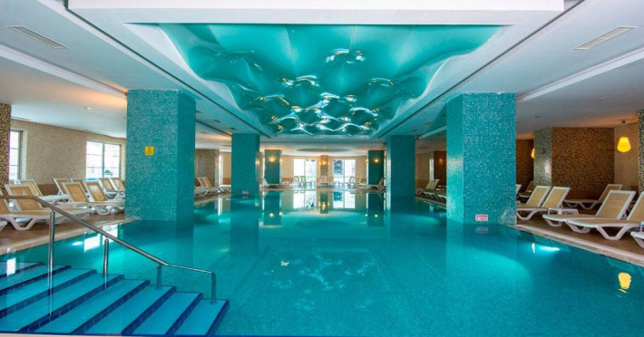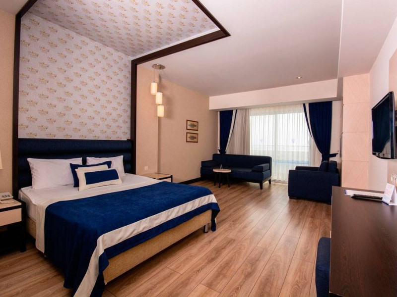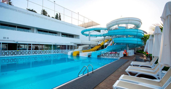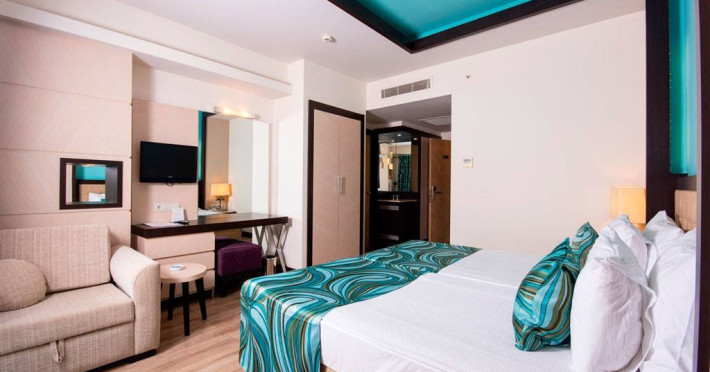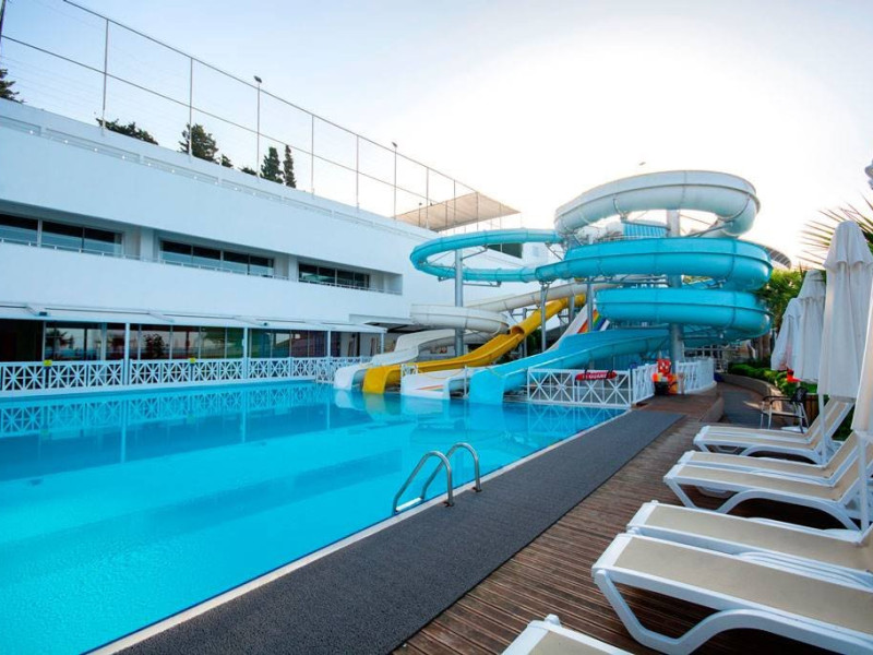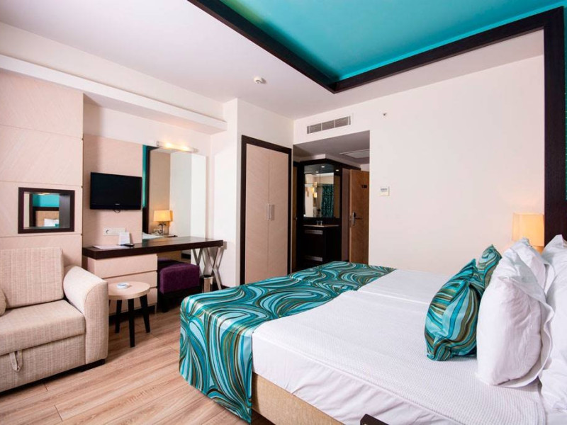 Facilitati hotel: Hotelul ofera oaspetilor sai multiple facilitati: restaurant principal, 3 restaurante a la carte, 5 baruri, patiserie, 2 piscine exterioare, 1 piscina interioara deschisa in extrasezon, 1 piscina pentru copii cu 4 topogane, centru Spa, sauna, hammam, centru fitness, aerobic,darts, tenis de masa, discoteca, programe de animatie.