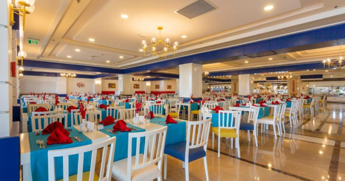 Hotelul oferă o gamă largă de facilități, printre care se numără un restaurant, un bar în interior, un bar lângă piscină, un bar disco, un snack-bar, un beach bar și serviciu în cameră.