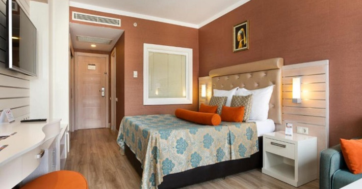 Hotelul are 514 spatii de cazare, repartizate intr-o cladire proncipala cu 6 etaje, 19 anexe Volendam House cu 2 etaje si cladirea Orange Gracht cu un etaj. Camerele au vedere la mare, la Muntii Taurus sau la Golful Antalya. De asemenea, dispun de baie proprie si sunt echipate cu foehn, aer conditionat centralizat, tv, telefon, minibar (bauturi racoritoare gratuite, zilnic) , seif, mocheta. Curatenia se face zilnic in camere, iar lenjeria se schimba de 3 ori pe saptamana. Internetul este gratuit si este disponibil atat in spatiile publice cat si in camere.