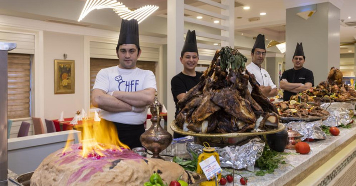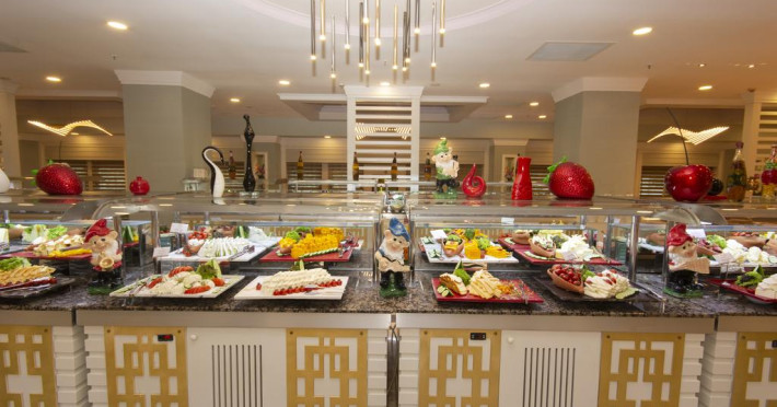 La Orange County Resort Hotel Kemer oaspeții au la dispoziție 8 restaurante unde pot savura mâncăruri delicioase, în stil bufet sau à la carte. Preparate din bucătăria locală, internațională, mediteraneeană, italiană, precum și preparate pescărești așteaptă să fie degustate în fiecare zi la micul dejun, prânz și cină. Pizza este de asemenea o opțiune culinară pentru cei gurmanzi. Masa poate fi servită atât în interior, cît si în aer liber, pe terasă, în funcție de vreme. Oaspeţii pot avea diverse băuturi răcoritoare sau alcoolice la bar. De asemenea , în cadrul proprietății, există cafenea și snack bar ideale pentru o gustare rapidă.