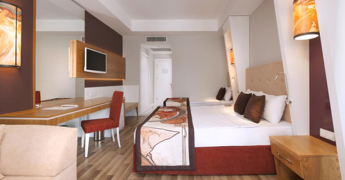 Sunt disponibile 180 camere. Oaspeții au la dispoziție serviciul de room service pentru a servi masa sau diverse băuturi. Camerele luminoase de la Orange Palace sunt dotate cu aer condiționat și Tv cu canale prin satelit. În camere există baie cu cadă sau duș prevăzută cu foehn. Curățenia in cameră se face zilnic. Proprietatea oferă camere pentru nefumători.