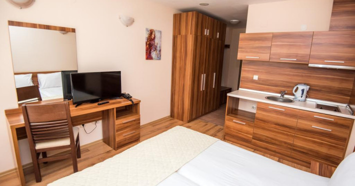 Toate apartamentele si studiourile sunt moderne si au o bucatarie complet utilata cu ustensile de bucatarie, frigider si zona de luat masa, precum si balcon si TV cu canale prin satelit. Cele mai multe dintre ele au, de asemenea, o masina de spalat.