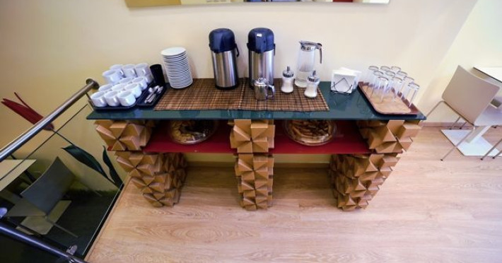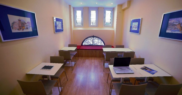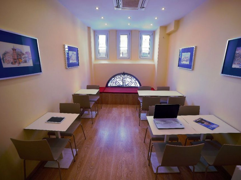 The hotel has rooms overlooking the Roman Forum or the church of St. Demetrius.