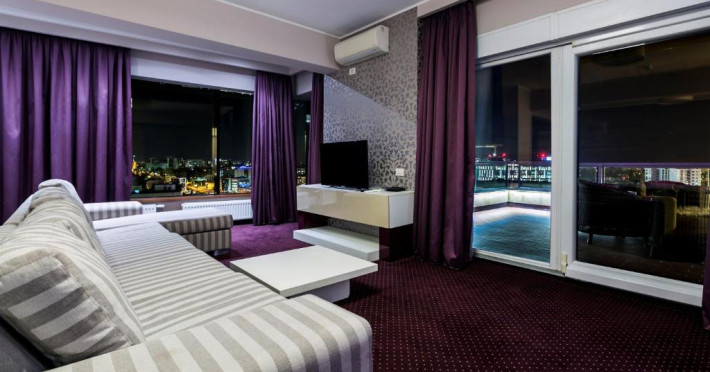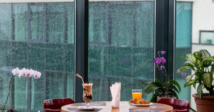 Micul dejun este servit zilnic la ultimul etaj de la Orhideea Residence & Spa, cu vedere frumoasă la oraș.