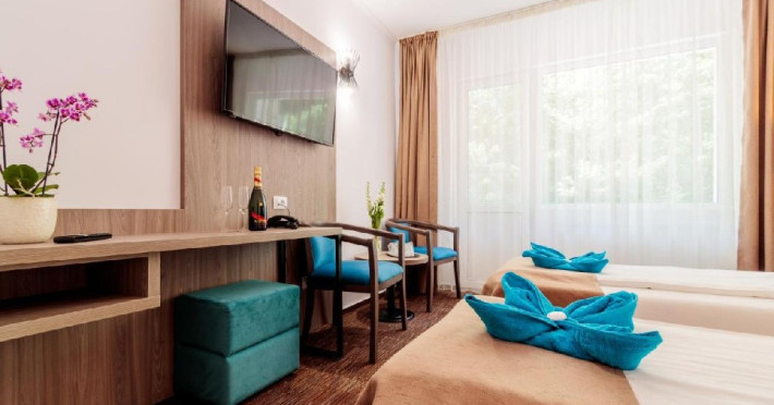 Hotelul pune la dispozitia oaspetilor sai 96 de locuri de cazare distribuite in: