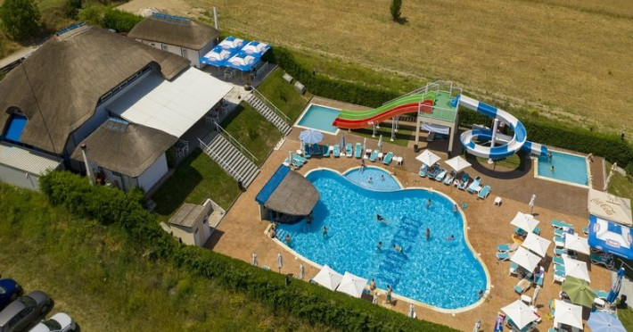 Situata in localitatea Mahmudia, pe bratul Sfantul Gheorghe.Dispune de restaurant, 2 terase, parcare proprie, internet wireless, curtea interioara generoasa, cu multa verdeata ofera spatii de joaca pentru copii si de relaxare pentru adult, aqua parc - piscina de 300 mp (adancime 1.40m), o piscina bebelusi (adancime 0.40m) si doua piscine (adancime 1.00m ) cu tobogane acvatice pentru copii si adulti.