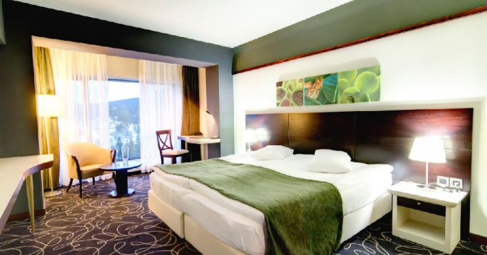 Centrul spa si centru de wellness - piscina acoperita, SPA, sala fitness, cada cu hidromasaj/jacuzzi, sauna uscata, sauna umeda, sauna cu infrarosu, masaj, impachetari - 5 tipuri, camera de gheata pentru tratamente complexe de infrumusetare.