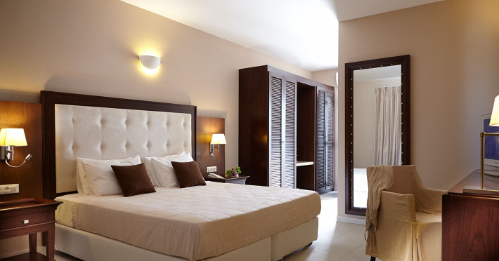 Hotelul este compus din camere standard, deluxe, superior si junior suite, amplasate in corpul principal, toate avand balcon si vedere spre mare sau gradina. Camerele dispun de baie proprie, aer conditionat, televizor LCD , TV satelit, mini-frigider, seif, uscator de par si linie telefonica directa.