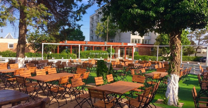 Restaurant: Hotelul Venus dispune de terasa-restaurant cu o capacitate de peste 300 locuri in aer liber. Restaurantul Venus propune un meniu diversificat incepand cu produse nationale specifice diferitelor parti ale Romaniei cat si un meniu variat, international. In sezon, terasa-restaurant propune turistilor program artistic variat.