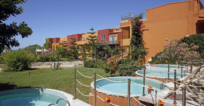 The charming Orpheas Resort is an ADULTS ONLY Hotel (over 16 years old) and it is located directly on Crete´s longest, and most beautiful beach, 18 kilometers long, beneath the impressive “White Mountains”Kavros, a little Village with tavernas and cafés is a short walk. Georgioupolis, once a fishing village and now the vivid touristic center of the area, is 4 km away.