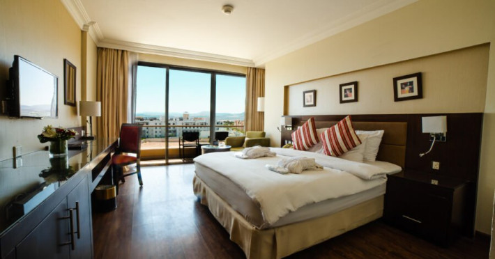 Facilitati camere: Toate camerele ofera TV cu ecran plat de 32 inch, aer conditionat si balcon. Baia privata are cada sau dus, uscator de par si bideu. Hotelul are in componenta sa camere: duble standard, duble deluxe si business suites.