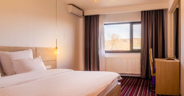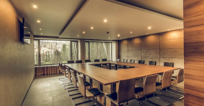 Hotelul dispune si de 2 sali de conferinte , ( sala miica cu o capcitate de 16 persoane si respectiv 26 de persoane in cea mare) si 1 sala de evenimente cu o capcitate de 90 de persoane cu toate dotarile necesare realizarii unui eveniment.