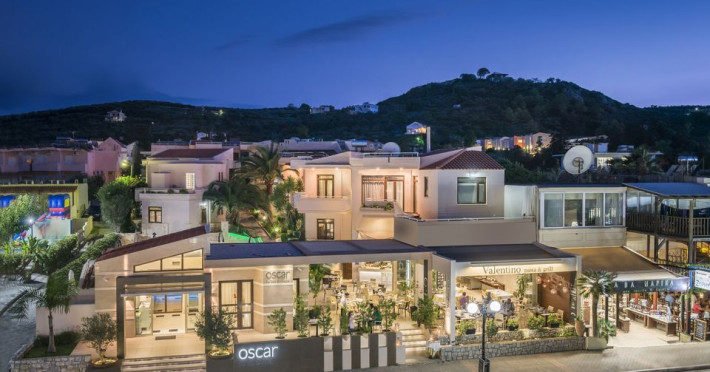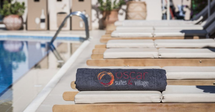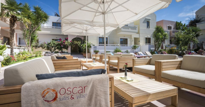 Oscar Suites & Village este o proprietate de 4 stele situată în Agia Marina (Creta-Chania) care oferă camere cu vedere la mare, un restaurant, o piscină în aer liber și o terasă cu șezlonguri și umbrele de soare. Proprietatea are servicii de recepție cu program non - stop și închirieri auto. Se oferă acces gratuit la internet Wi-fi în spațiile publice. Parcarea este disponibilă la proprietate gratuit.