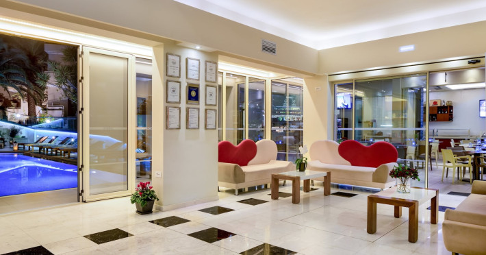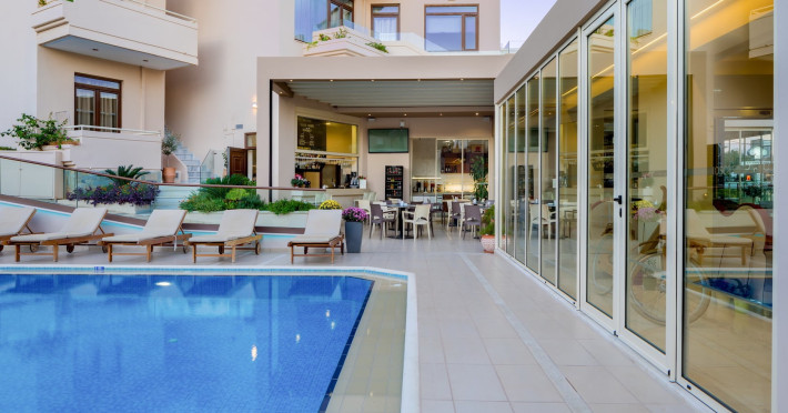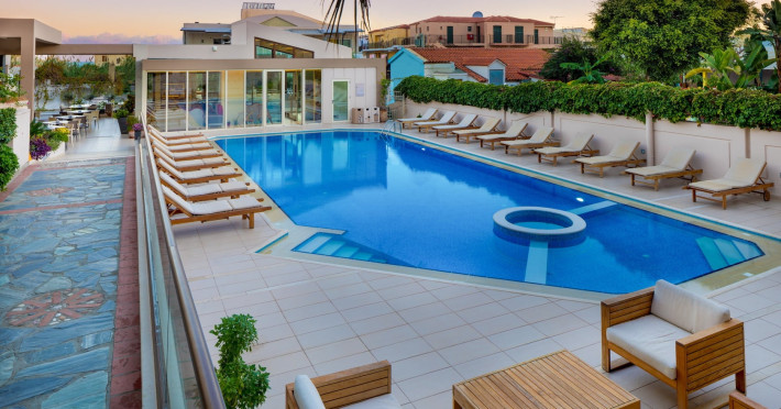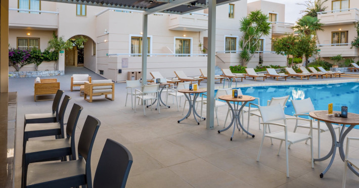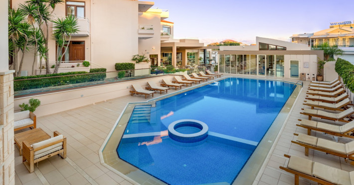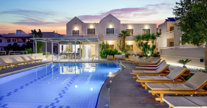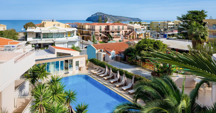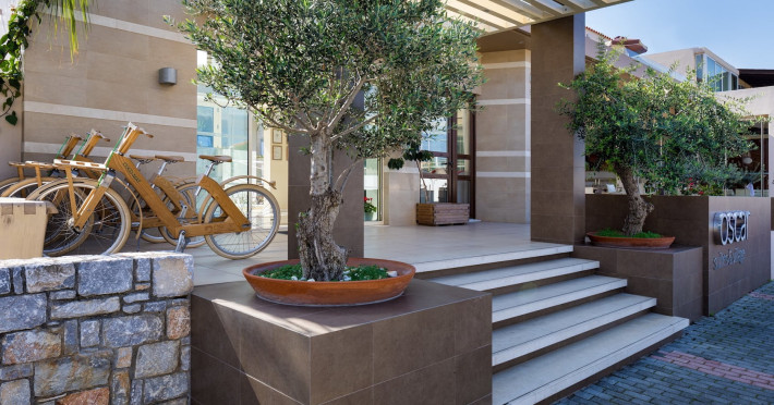 Oscar Suites & Village is just a small walk away from the villages of Agia Marina and Platanias where you will find shops, tavernas, nightlife, beach bars and a sandy beach facing the endless horizon of the Aegean Sea. A bus stop is situated right outside the hotel.