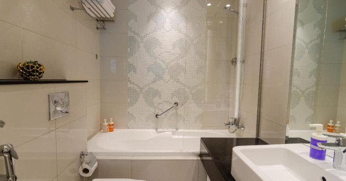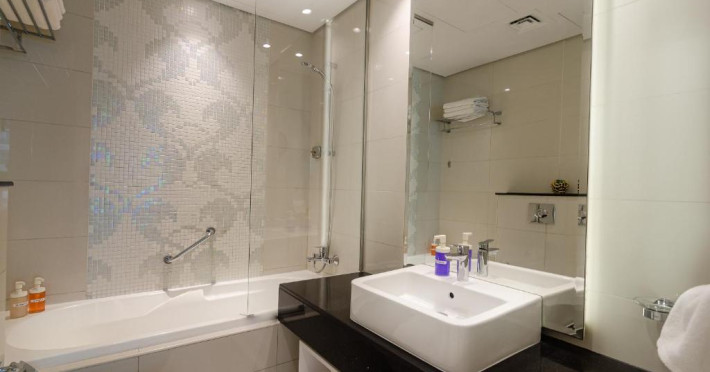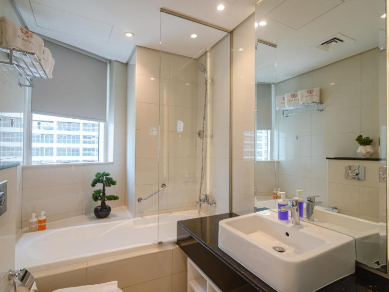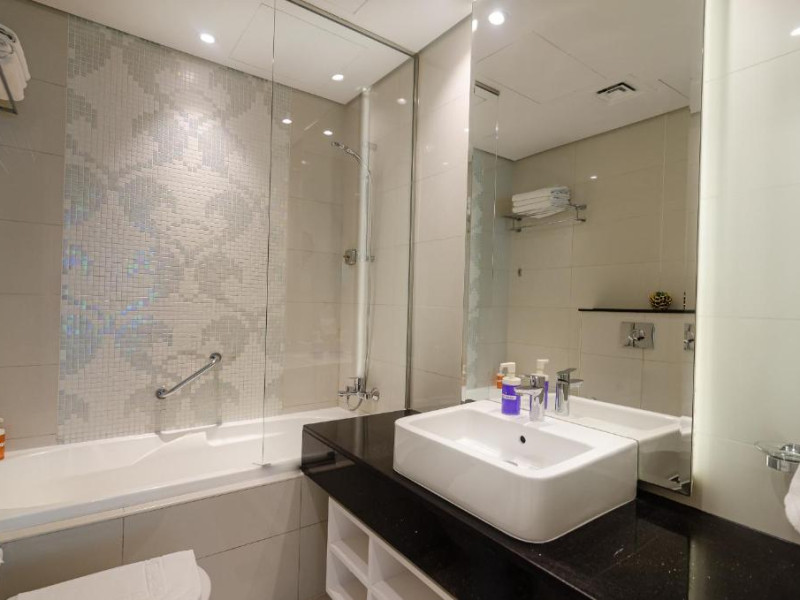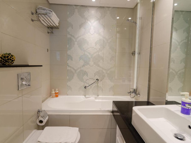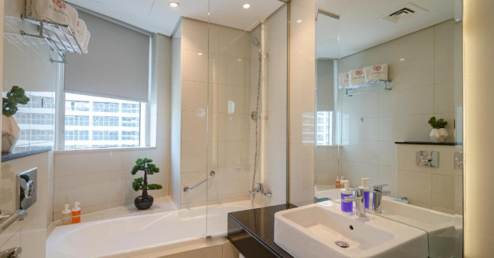 Oaspeții cazați la OSKENA Vacation Homes-Damac Maison Canal View au la dispoziție o saună și o cadă cu hidromasaj.