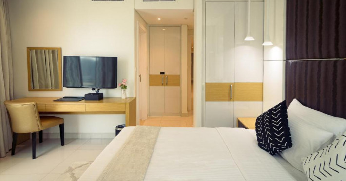 OSKENA Vacation Homes-Damac Maison Canal View se află in Dubai, la 17 minute de mers pe jos de Fantana din Dubai și la 1,7 km de Dubai Mall, și oferă unități de cazare cu WiFi gratuit, climatizare, o zonă in aer liber. și un centru de fitness. Se oferă la locație parcare privată.
