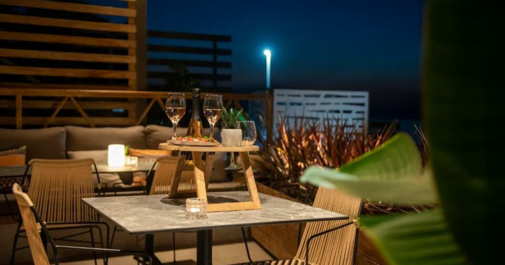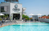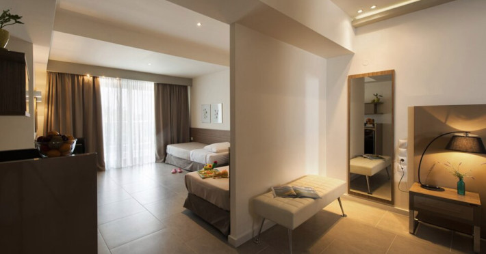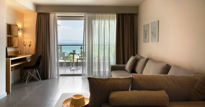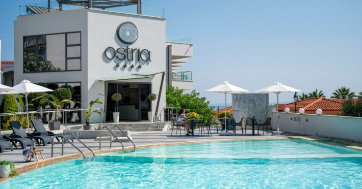 Only 30 feet from the sandy beach of Hanioti, Kassandra, Ostria Sea Side is a sleek 4-star hotel with all the amenities required for a cozy holiday. Opened in 2015, this modern and functional complex offers umbrellas and sunbeds on the beach, an outdoor pool, a beach bar, an a-la-carte restaurant, reception, small parking and fully equipped rooms and suites. Center of the bustling Hanioti is at 300m distance, while Thessaloniki airport lies at 90km distance. ROOMS: Deluxe room sea view 1-2 pax, max 2 adults Family room ground floor 1-5 pax, max 4 adults Family room side sea view 1-5 pax, max 4 adults Ostria suite 1-4 pax, max 2 adults Superior room ground floor 1-4 pax, max 3 adults Superior room side sea view 1-4 pax, max 3 adultsDatorita dinamicitatii domeniului disponibilitatea ofertelor se modifica de la un moment la altul. De aceea ofertele sunt valabile in limita locurilor disponibile. Agentia nu este responsabila pentru eventualele neconcordante care pot aparea intre informatiile privind tarifele si alte detalii din site si informatiile primite in agentie. In aceste cazuri vor avea prioritate, intotdeauna, informatiile primite in agentie.