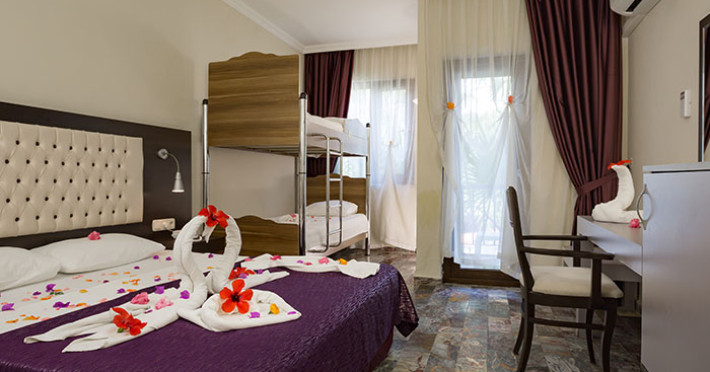 Sunt disponibile 90 camere. Camerele luminoase de la Club Akman Beach Resort sunt dotate cu aer condiționat, Tv și seif. În camere există baie cu duș ce are în dotare foehn și articole de toaletă gratuite. Unele camere au balcon cu vedere la mare, unde oaspeții pot admira apusul sau răsăritul soarelui. Curățenia in cameră se face zilnic.