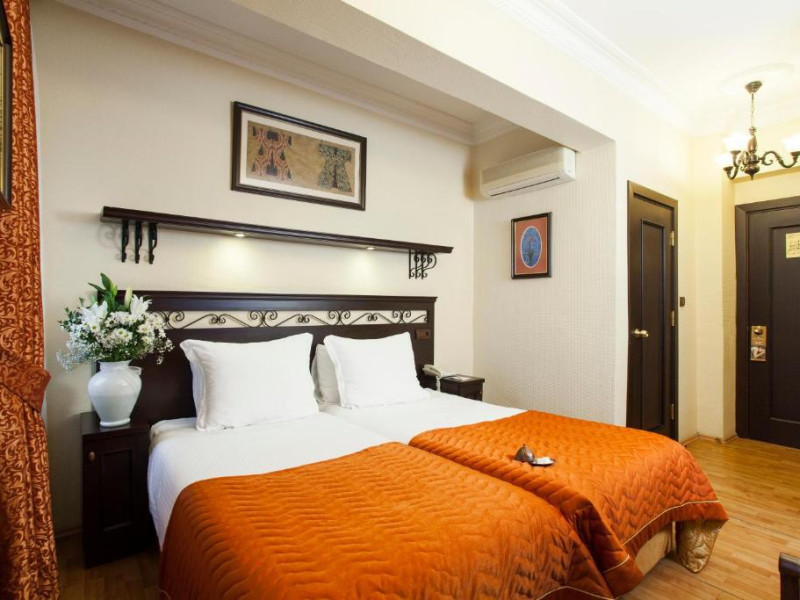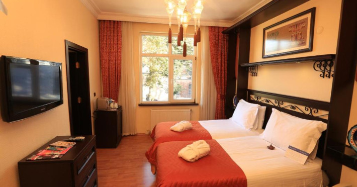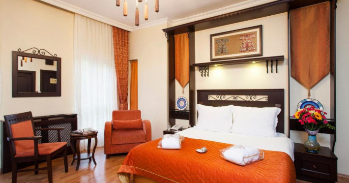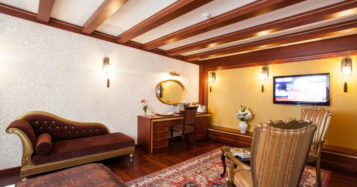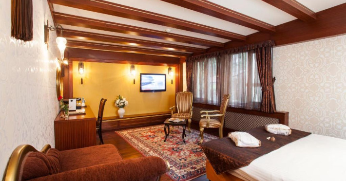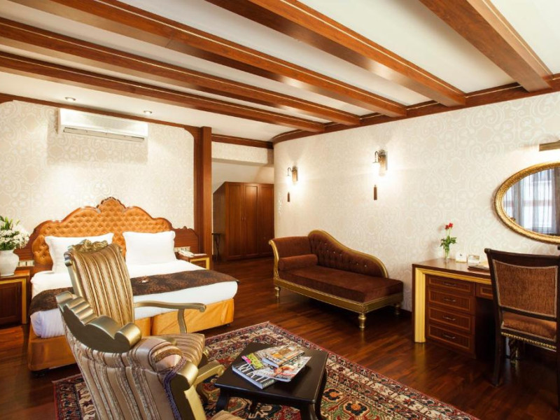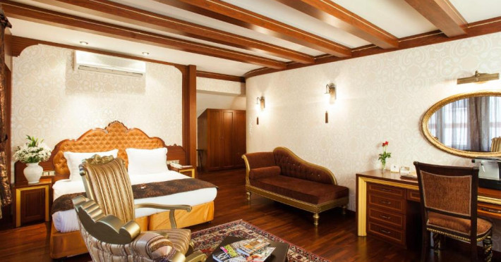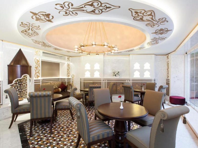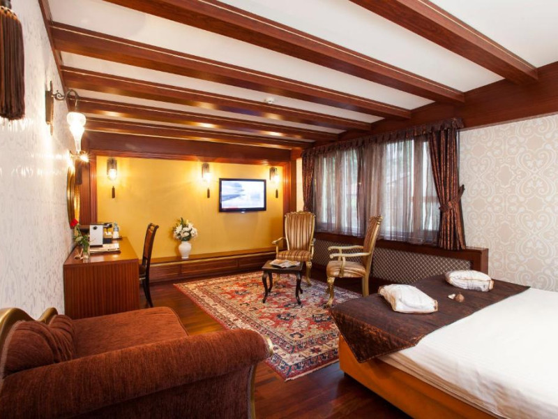 Camerele combină designul otoman tradițional cu facilități contemporane, oferind un decor rafinat cu lambriuri din lemn și mobilier elegant. Restaurantul Matbah al hotelului este renumit pentru preparatele sale din bucătăria otomană autentică, servite intr-un cadru ce amintește de fastul imperial.
