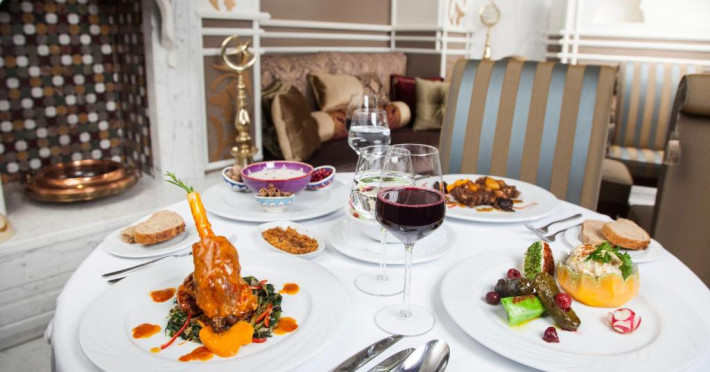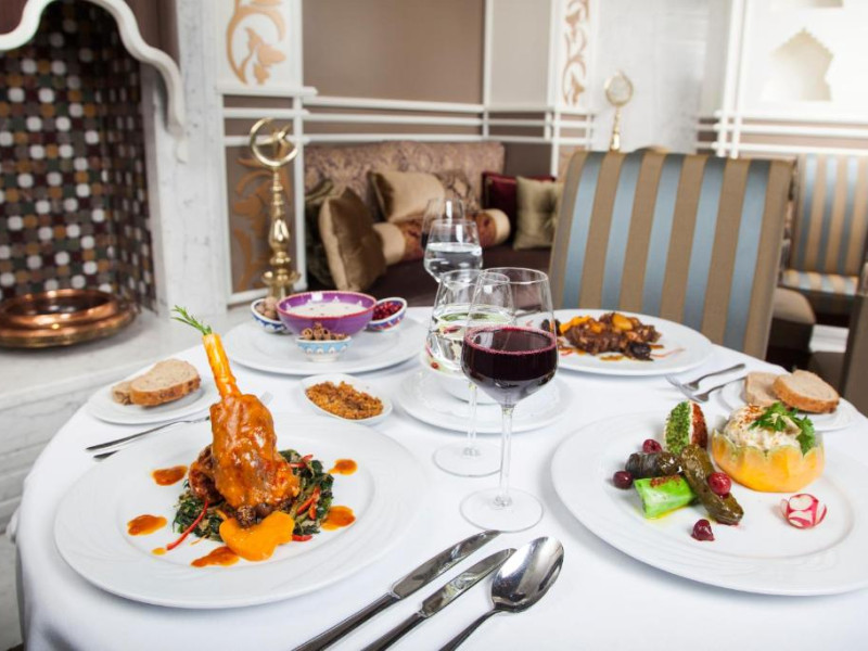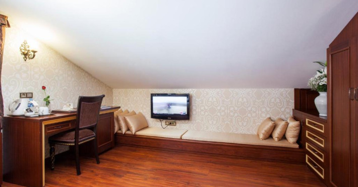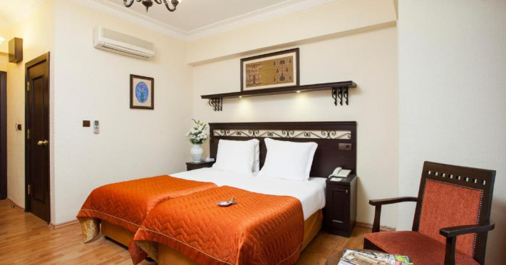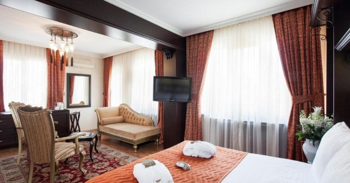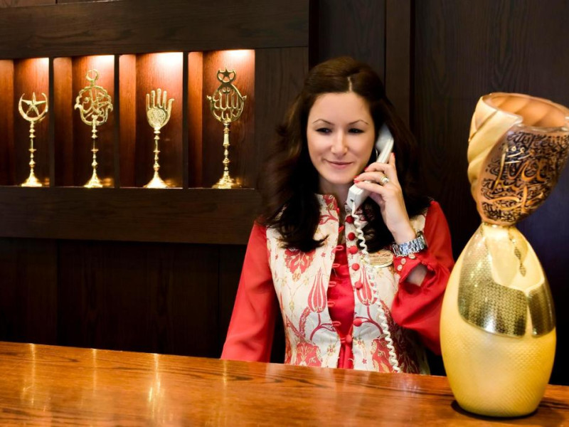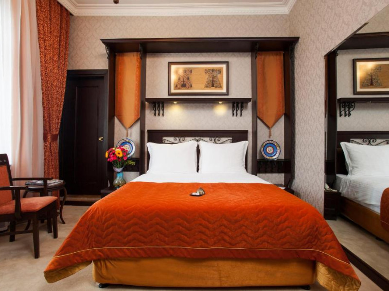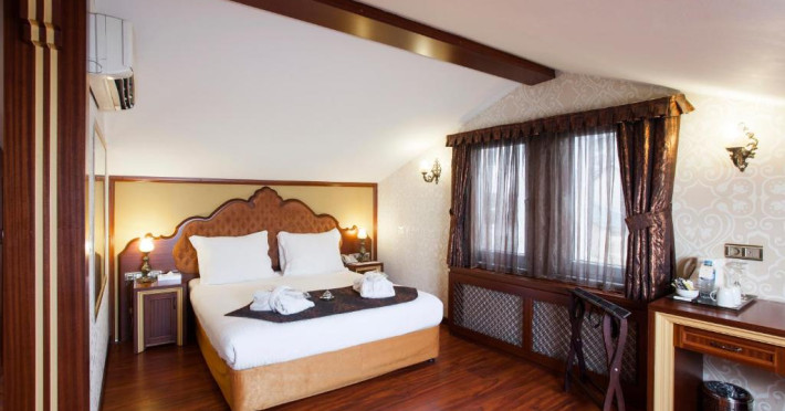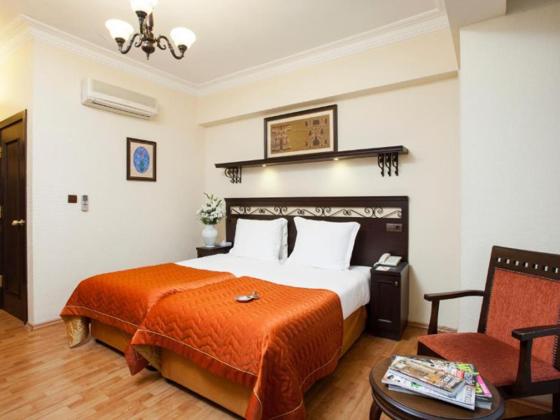 Camerele combină designul otoman tradițional cu facilități contemporane, oferind un decor rafinat cu lambriuri din lemn și mobilier elegant. Restaurantul Matbah al hotelului este renumit pentru preparatele sale din bucătăria otomană autentică, servite intr-un cadru ce amintește de fastul imperial.