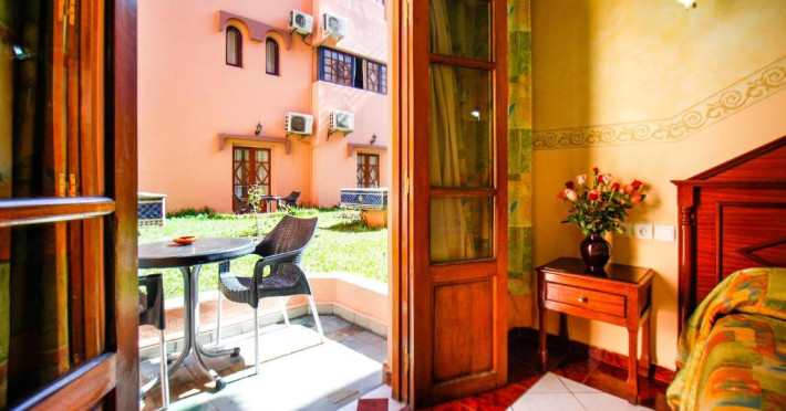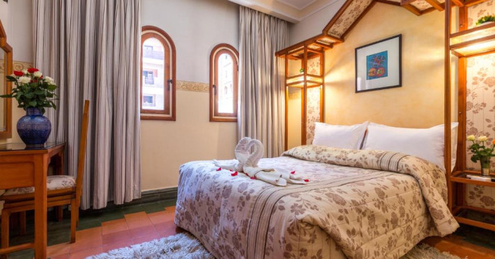 Located in Marrakech's Gueliz district, 450 metres from Avenue Mohammed VI and a 15-minute walk from Majorelle Gardens, this hotel offers air-conditioned rooms. A swimming pool with a poolside bar and sauna is available on site.