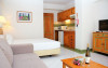 Ourabay Hotel Apartment comprehends studios, one- and two-bedroom apartments, distributed by 5 floors. All apartments are spacious and include air conditioning, satellite TV, phone, Wi-Fi, safety deposit box, as well as iron and ironing board. The kitchenette is fully equipped with fridge, microwave, ceramic hob, kettle, toaster and kitchenware. Apartments are also equipped with bathroom and a balcony with views over the pool, city or garden.