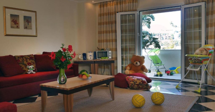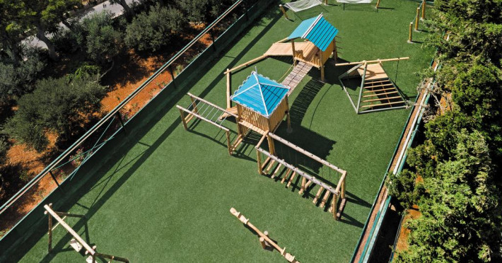 Proprietatea este o alegere potrivită pentru familiile cu copii. Cei mici se pot distra în aer liber la piscina pentru copii, prevăzută cu tobogane cu apă sau în locul de joacă special amenajat. Pentru orele toride cei mici pot opta pentru zona de joacă amenajată la interior, unde există jocuri și muzică. Copiii au la dispoziție jocuri și puzzle-uri. Pentru cei mai mici Out Of The Blue, Beach Resort oferă servicii de babysitting.