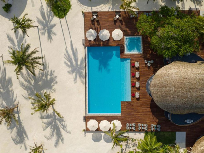Situată pe o insulă privată in regiunea imaculată a Atolului Ari de Sud, la aproximativ 25 de minute de zbor cu hidroavionul de Aeroportul Internațional Malé. Cu farmecul său de insulă mică, vegetația luxuriantă inconjurată de nisip moale alb ca pudra și un recif pe care o multitudine de pești tropicali il numesc acasă, insula are puțin peste 345 de metri lungime și poate fi parcursă pe jos in doar 10 minute și puțin! Vilele cu acoperiș de stuf, inspirate de arhitectura locală, sunt amplasate in mijlocul unor grădini verzi sau sunt poziționate deasupra lagunei turcoaz.
