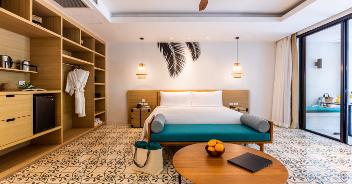The hotel Outrigger Surin Beach Resort is located approximately 150 m from a public beach. The city centre is around 24 km away. There is a 24h shuttle service between the hotel and the airport (for a fee) 24h a day. On the beach are beach towels available. The GPS-verified hotel is equipped with a 24h reception (check-in is possible around the clock), a lobby, Wi-Fi, internet access, a first aid kit, parking spaces as well as a TV lounge with satellite TV. At the pool, deck chairs, parasols and pool towels are available for free. You can store your valuables in the safe, and your luggage in the hotel`s storage room. For the young hotel guests there is a playground. For very young guests, kid`s chairs can also be provided. There is also a laundry service available at an additional cost to customers as well as an ironing service. Ironing equipment can also be rented at the hotel for a fee. For your comfort the hotel page will ensure you are looked after. The energy supply is 220 Volts. For guests on their honeymoon, the hotel has special offers such as a romantically-decorated room. In your hotel, a lot of focus is placed on sustainability. This includes among others the provision of soap and shampoo dispensers. The hotel requires that all guests pay a deposit upon arrival. Catering As catering services the hotel offers all-inclusive, half board and full board. Breakfast is offered from the buffet. Enjoy your lunch as a set meal or à la carte with starters, salads and desserts. Dinner is also served as a buffet, as a set meal or à la carte with starters, salads and desserts. Half board includes breakfast. In the gastronomic area also vegetarian and gluten-free dishes are served. The drinks menu of the hotel includes water, soft drinks, coffee and tea, beer and wine. Distances- Airport: approximately at 23 km