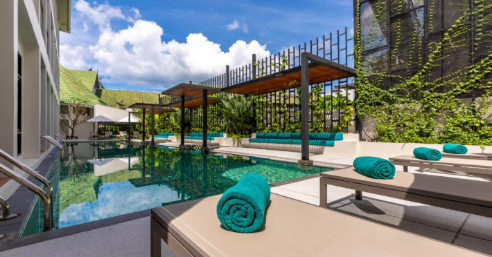 Complexul de tip boutique are 60 de camere, apartamente elegante și apartamente spațioase cu piscină mică și adancă.