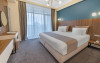 Camera matrimoniala este prevazuta cu un pat king size, oglinzi mari cu lupa si leduri, TV, dulapuri push-to-open, telefon, mini-bar, seif de mici dimensiuni, afisaj electronic pentru nu deranjati, va rog faceti curatenie, Wi-Fi gratuit, acces si control prin smart card, aer conditionat cu tehnologia inverter, balcon cu mobilier. Baia include cabina de dus, oglinda cosmetica, halate si papuci, uscator de par, cosmetice Relax|Refresh|Revive. Aproximativ 22 mp.