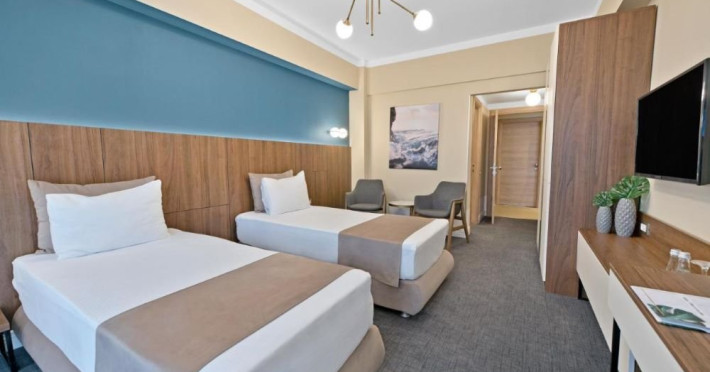 Camera twin este prevazuta cu doua paturi twin, oglinzi mari cu lupa si leduri, TV, dulapuri push-to-open, telefon, mini-bar, seif de mici dimensiuni, afisaj electronic pentru nu deranjati, va rog faceti curatenie, Wi-Fi gratuit, acces si control prin smart card, aer conditionat cu tehnologia inverter, balcon cu mobilier. Baia include cabina de dus, oglinda cosmetica, halate si papuci, uscator de par, cosmetice Relax|Refresh|Revive. Aproximativ 22 mp.