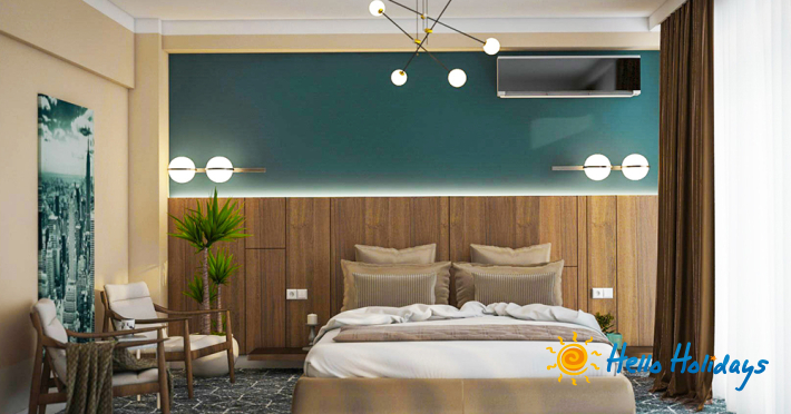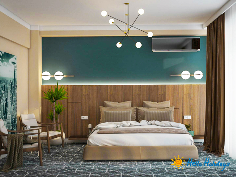 Camera deluxe este prevazuta cu un pat matrimonial king size si o canapea de o persoana, oglinzi mari cu lupa si leduri, TV Smart Led full HD, dulapuri push-to-open, linie telefonica, mini-bar, seif de mici dimensiuni, afisaj electronic pentru nu deranja / va rog faceti curatenie, Wi-Fi gratuit, acces Cai control prin smart card, aer conditionat cu tehnologia inverter si balcon cu mobilier. Baia include cabina de dus, oglinda pentru cosmetica, halate si papuci, usctor de pr, cosmetice Relax|Refresh|Revive.