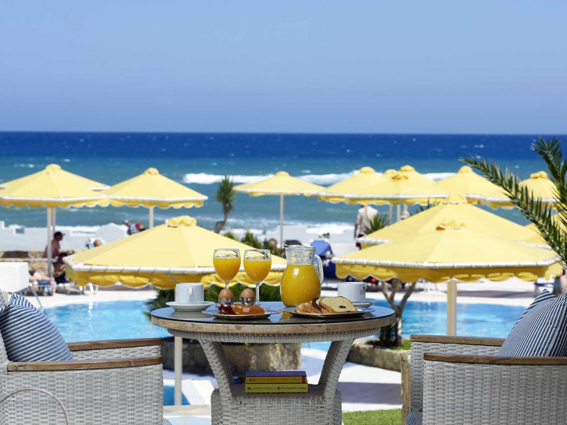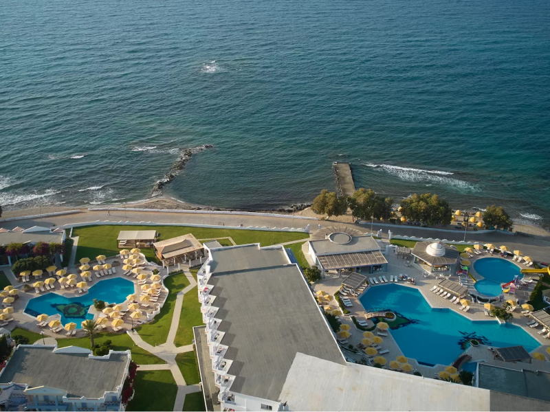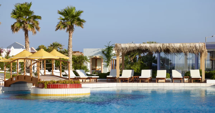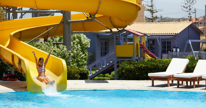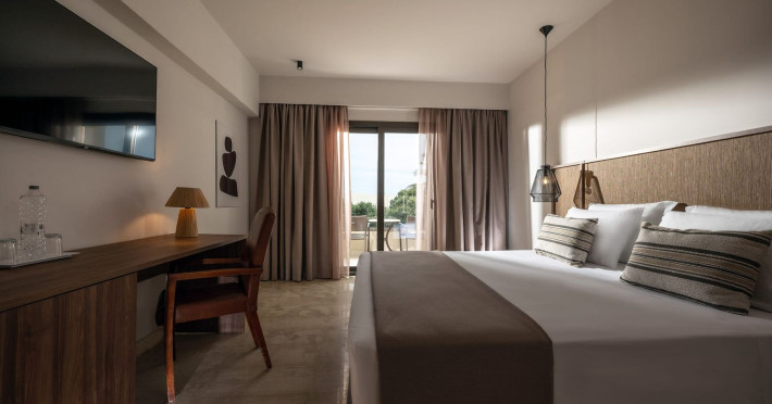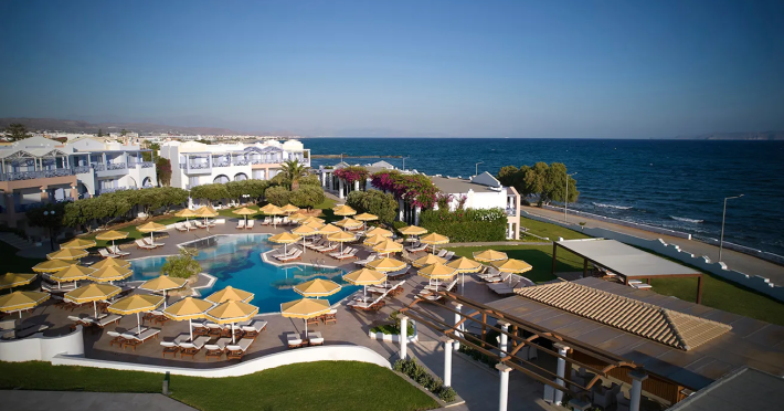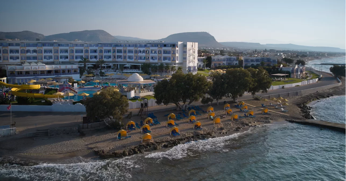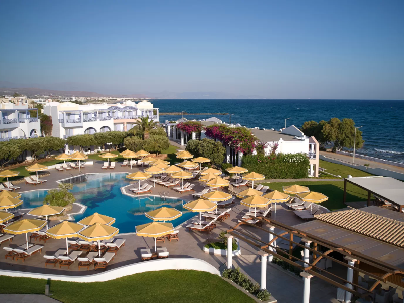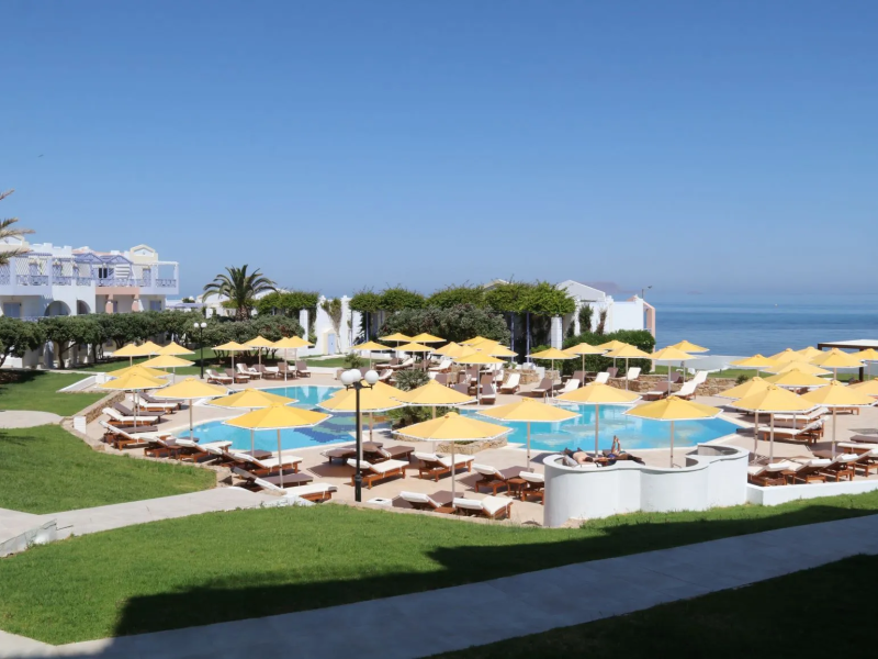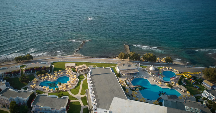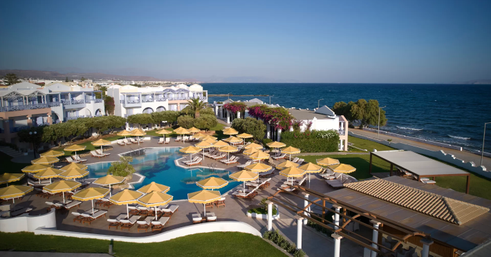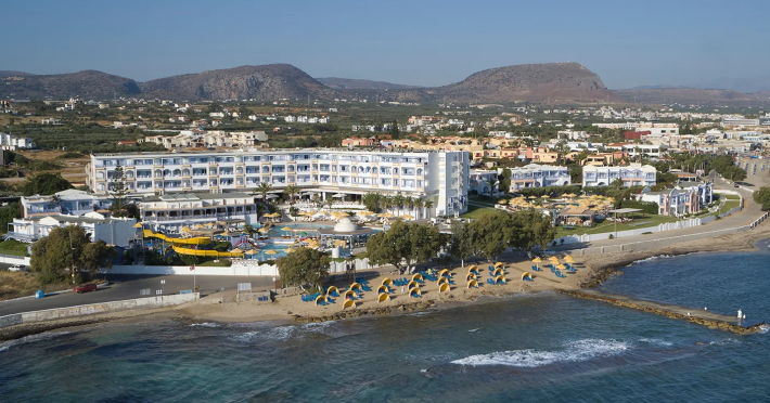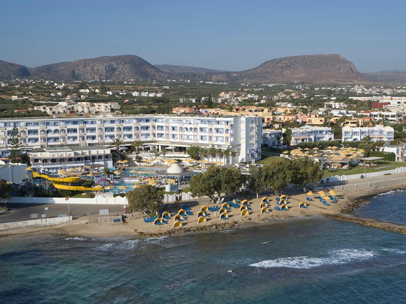 Serita Beach Resort features 276 rooms, including double, family, and bungalow options. All rooms are designed in an elegant Mediterranean style that captures the region's warm, inviting atmosphere. All rooms are air-conditioned and come with a balcony or terrace, and many offer breathtaking views of the Cretan Sea or the beautifully landscaped gardens. Guests will enjoy the all-inclusive concept, which includes high-quality dining at the main restaurant and three à la carte restaurants, two snack points, and two bars offering a wide selection of drinks, cocktails, and snacks by the pool. The property offers a wide range of activities and entertainment options for the whole family, dedicated childcare services, and warm Greek hospitality. Here, guests can completely relax, recharge, and make the most of their holiday. The resort has two pools, water slides, a wide range of sports activities, and an exclusive spa. Every day brings new experiences, whether guests are looking for entertainment in the theater, sports activities, or a relaxing day at the beach.