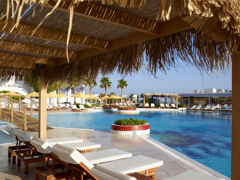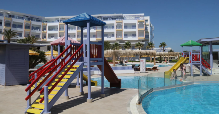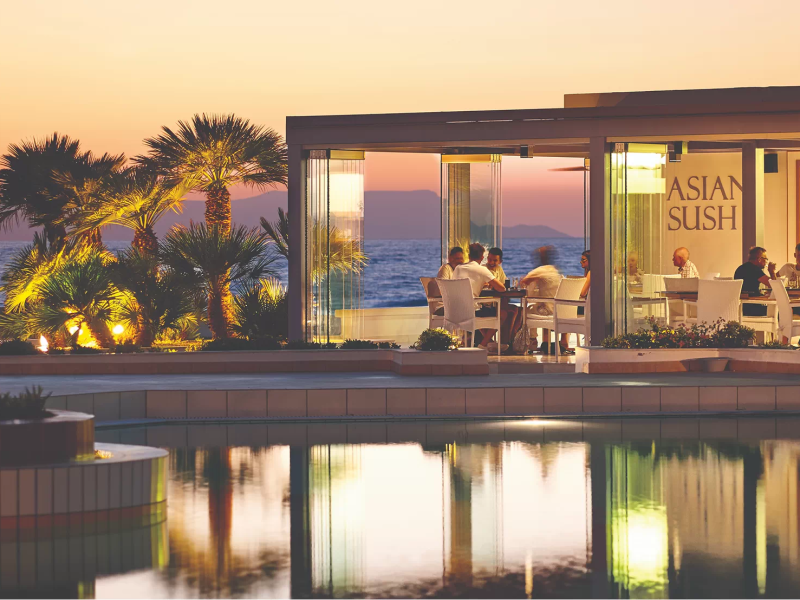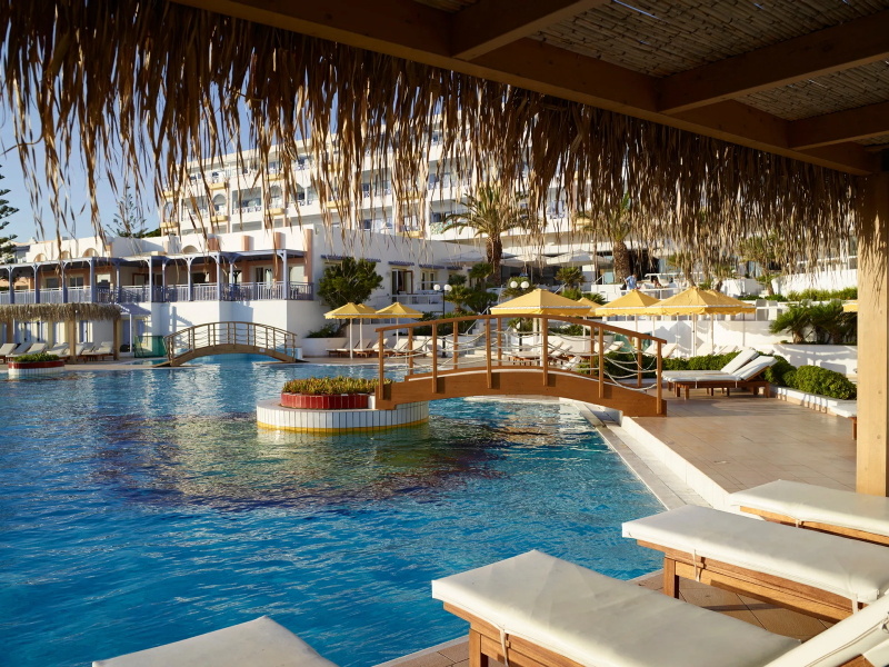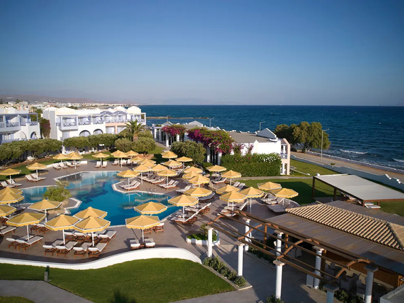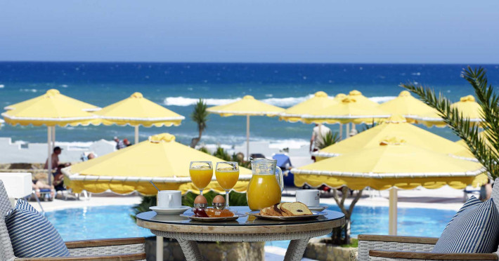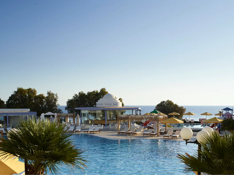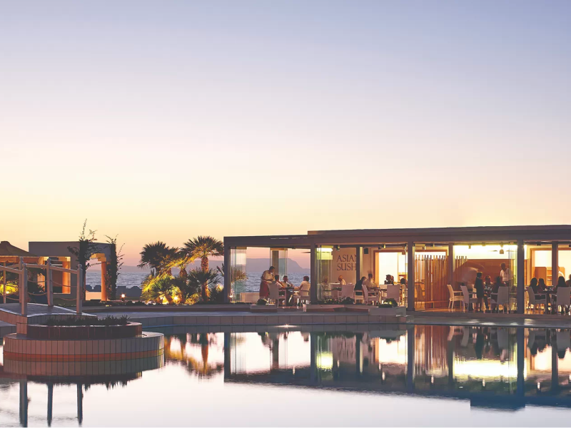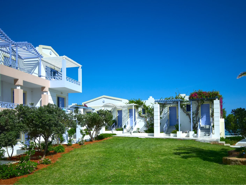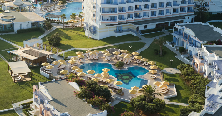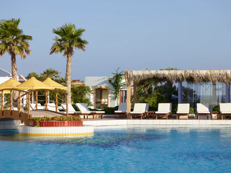 Serita Beach Resort features 276 rooms, including double, family, and bungalow options. All rooms are designed in an elegant Mediterranean style that captures the region's warm, inviting atmosphere. All rooms are air-conditioned and come with a balcony or terrace, and many offer breathtaking views of the Cretan Sea or the beautifully landscaped gardens. Guests will enjoy the all-inclusive concept, which includes high-quality dining at the main restaurant and three à la carte restaurants, two snack points, and two bars offering a wide selection of drinks, cocktails, and snacks by the pool. The property offers a wide range of activities and entertainment options for the whole family, dedicated childcare services, and warm Greek hospitality. Here, guests can completely relax, recharge, and make the most of their holiday. The resort has two pools, water slides, a wide range of sports activities, and an exclusive spa. Every day brings new experiences, whether guests are looking for entertainment in the theater, sports activities, or a relaxing day at the beach.