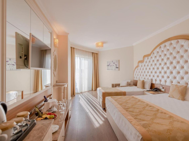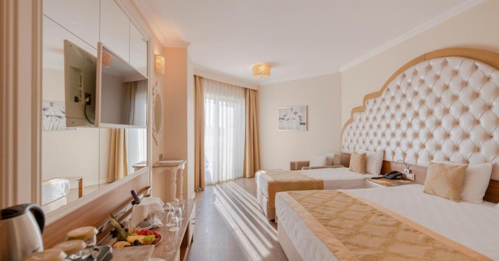 Localizare: hotelul este situat in apropiere de Plaja publică din Side si la 48 km de Aeroportul Antalya. Facilitati hotel: piscina exterioara, acces imediat la plaja, camere de familie, WiFi gratuit inclus, transfer de la si/sau la aeroport, spa si centru de wellness, parcare gratuita, sala de fitness, bar, zona de plaja privata. Dotari camere: balcon, vedere la gradina, aer conditionat, baie privata, TV cu ecran plat, Terasa, Minibar, WiFi gratuit. Servicii contra cost: serviciu de transfer, serviciu de curatatorie si calcatorie, snorkelling, scufundari, facilitati sporturi nautice, pescuit, echipament tenis, biliard, masaj, sala fitness, spa si centru wellness, sauna, jacuzzi. IMPORTANT: Descrierea hotelului se bazeaza pe detaliile disponibile la momentul pregatirii tarifelor pentru sezonul turistic ce urmeaza a se desfasura si are caracter pur informativ. Hotelul poate aduce modificari de structura, denumiri camere, tip serivicii incluse/neincluse si altele, fara a notifica in prealabil. Pentru informatiile oficiale va rugam sa consultati website-ul hotelului.IMPORTANT