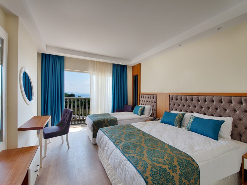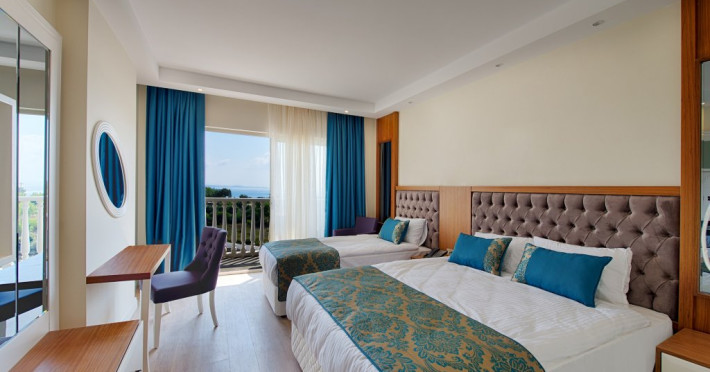Hotelul este situat in statiunea Alanya, la 30 de km de aeroportul din Antalya si la 500 m de plaja proprie. Deschis in 2016 acest hotel ofera cazare in 307 camere, standard si family. Restaurantul principal serveste diferite preparate stil bufet si hotelul dispune de asemenea de un bar la piscina si unul la plaja. Turistii se pot bucura de o piscina exterioara, piscina interioara si centru SPA. Plaja privata este la 500 m de proprietate si se asigura transferul cu shuttle bus de catre hotel. Localizare: Hotelul este situat in Okurcalar - Alanya, se afla la o distanta de 108 km de centrul statiunii Antalya, 98 km de Aeroportul international Antalya, 30 km de Alanya si 20 km de Manavgat. Facilitati hotel: Hotelul pune la dispozitia turistilor restaurant principal - se pot servi mesele principale in sistem bufet deschis, bufet special pentru copii, Bar la piscina, Lobby Bar, Bar la plaja, Magic Disco, Snacks-uri si aperitive, Snack Restaurant, Patiserie, Restaurante A la carte: Otoman cu specific turcesc si Seafood cu specific pescaresc - deschise 4 zile pe saptamana, cu rezervare prealabila (odata pe sejur saptamanal, gratuit), receptie, lobby, room service 24 h (contra cost), Wi-Fi gratuit in lobby si camere, Centru Spa & Wellness - piscina interioara pentru adulti si pentru copii (cu o adancime de 35 cm) masaj, terapii si tratamente, baie turceasca, sauna, camera de relaxare, Centru Fitness, 3 sali de conferinta. Hotelul dispune de plaja privata la 500 m distanta si ofera transfer pana la plaja cu shuttle gratuit, piscina exterioara pentru adulti, piscina exterioara pentru copii, mic Aqua Park deschis intre orele 10.30 - 12.00 si 14.30 - 16.30. Piscina pentru copii exterioara este special amenajata pentru siguranta celor mici si are o adancime de 35 cm. Facilitati camera: Camerele sunt dotate cu mini bar (reumplut zilnic cu bauturi racoritoare), TV prin satelit, conexiune la internet, telefon direct, aer conditionat, seif, parchet, baie cu WC si dus, oglinda pentru machiaj si uscator de par.Facilitati hotel