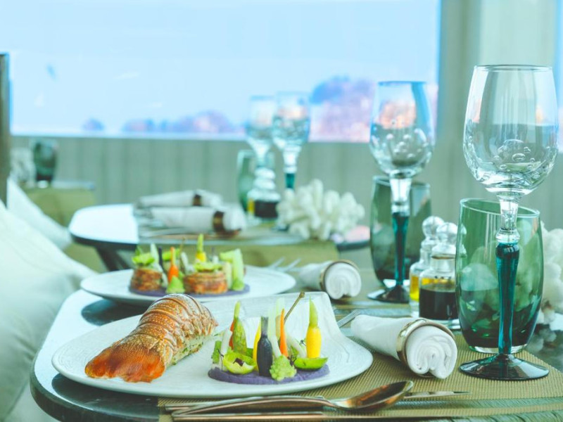 Regimul All inclusive - The INDULGENCE Plan include un serviciu gratuit de transfer de la/la aeroport cu barca de lux cu motor, experiențe culinare rafinate și specializate, băuturi spirtoase premium, bere, vinuri și cocktailuri, utilizarea echipamentelor pentru snorkeling și sporturi nautice nemotorizate, experiență spa sau scufundări, precum și minibar aprovizionat zilnic.