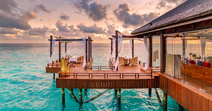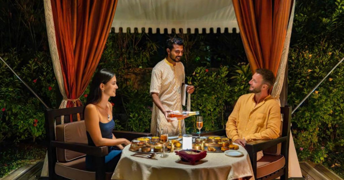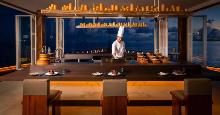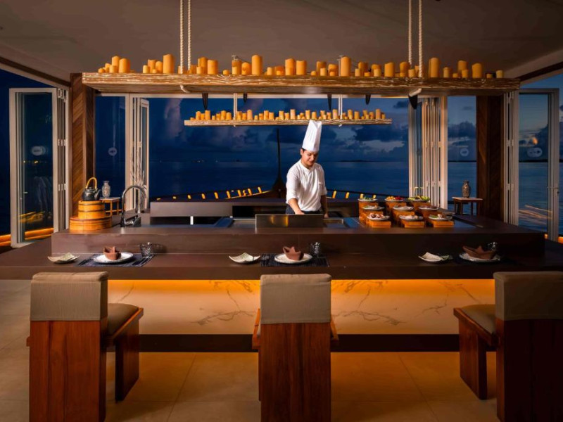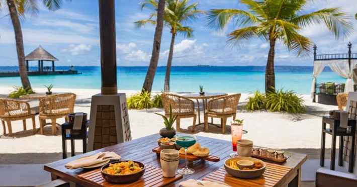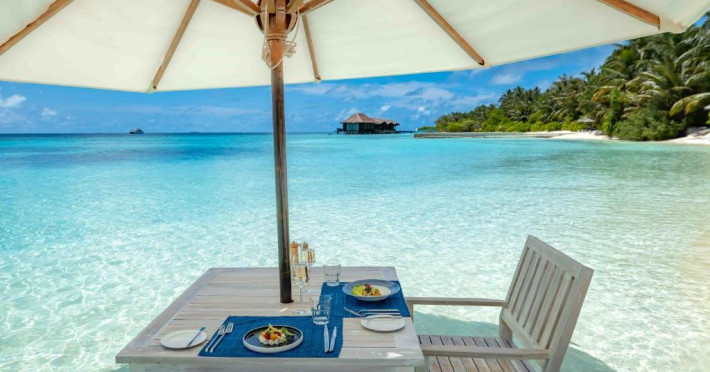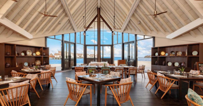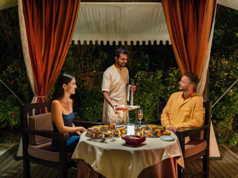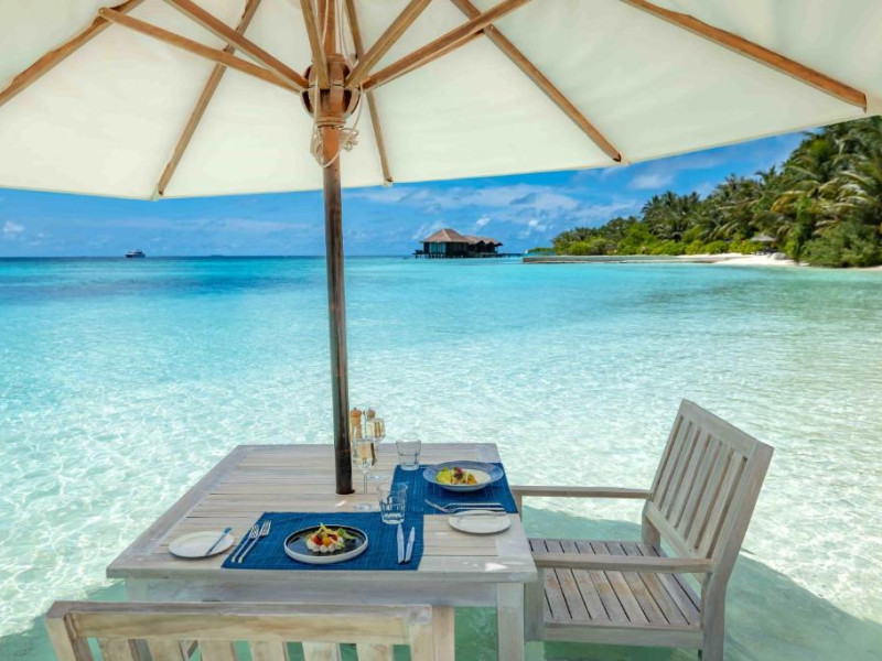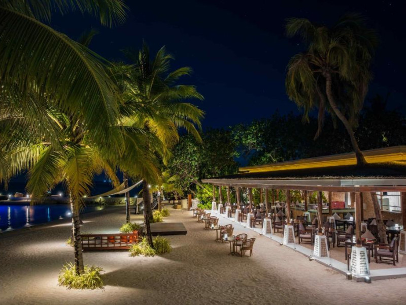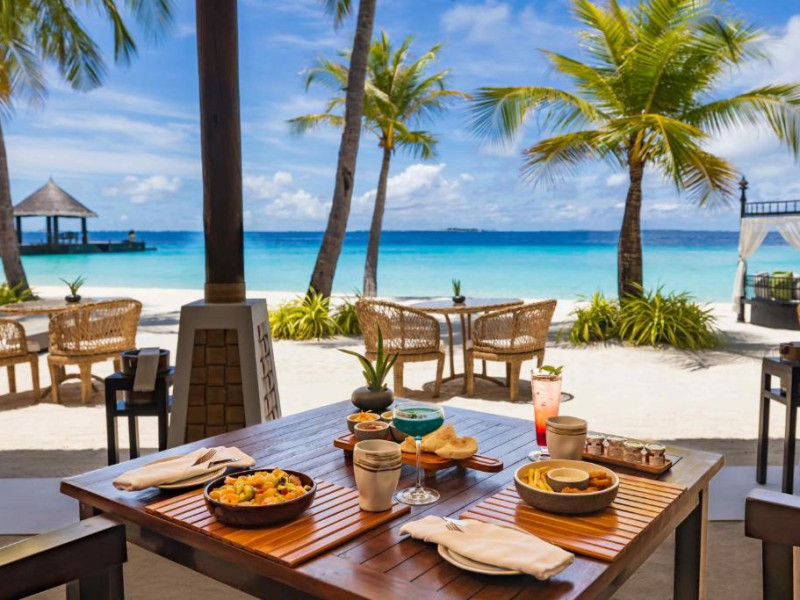 Oaspeții pot lua masa in splendoarea Maldivelor, in timp ce admiră vederea superbă la Oceanul Indian. Complexul oferă o varietate de experiențe culinare și bucătării, inclusiv preparate indiene tradiționale, mancăruri revigorante din Orientul Mijlociu servite langă plajă și preparate gourmet din fructe de mare, insoțite de șampanie și vinuri excelente.