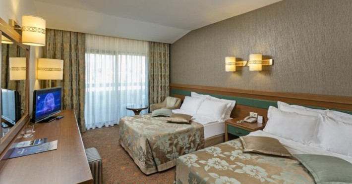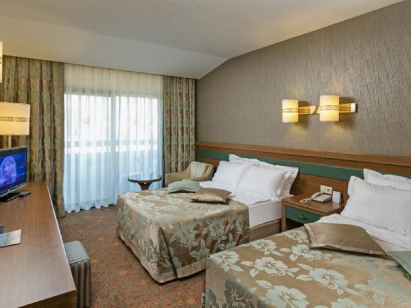 The hotel has 350 rooms, including 12 junior suites and 318 double rooms, which are located on 7 storeys and are reachable by lift. The reception desk in the lobby is staffed round the clock. Amenities include a baggage storage service, a safe and a currency exchange service. Wireless internet access (for a fee) allows guests to stay connected while on holiday. A number of shops, including a supermarket, are great for shopping or just browsing. The grounds of the hotel feature a playground and a lovely garden. Additional amenities include a newspaper stand, a TV room and a playroom. Guests arriving by car can park their vehicles in the garage or in the car park. Further services and facilities include a babysitting service, a childcare service, a car hire service, medical assistance, a laundry service and a hairdresser. A bicycle hire service provides all the necessary equipment for exploring the surrounding area.Datorita dinamicitatii domeniului disponibilitatea ofertelor se modifica de la un moment la altul. De aceea ofertele sunt valabile in limita locurilor disponibile. Agentia nu este responsabila pentru eventualele neconcordante care pot aparea intre informatiile privind tarifele si alte detalii din site si informatiile primite in agentie. In aceste cazuri vor avea prioritate, intotdeauna, informatiile primite in agentie.