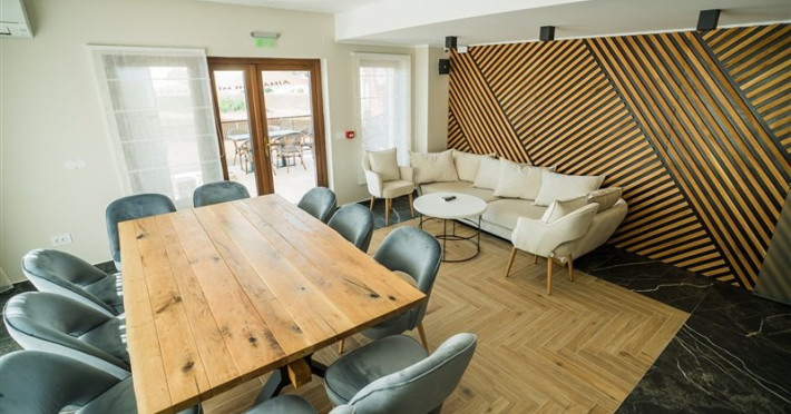 - 3 apartamente - suprafata de 45 mp - dormitor cu pat matrimonial si living cu canapanea extensibila, balcon, aer conditionat, tv cu ecran plat, terasa, minibar, halat de baie, grup sanitar cu cabina de dus.