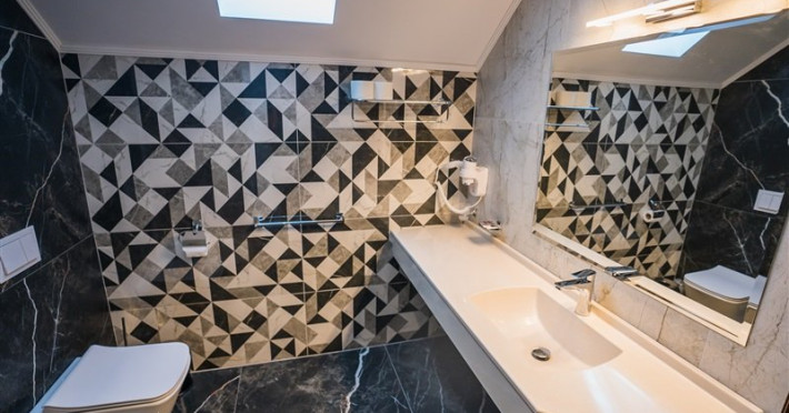 - 9 camere duble decorate intr-un stil elegant cu o suprafata de 25 mp si pat matrimonial. Balcon, vedere la curtea interioara, aer conditionat, tv cu ecran plat, minibar, grup sanitar cu cabina de dus, uscator de par.
