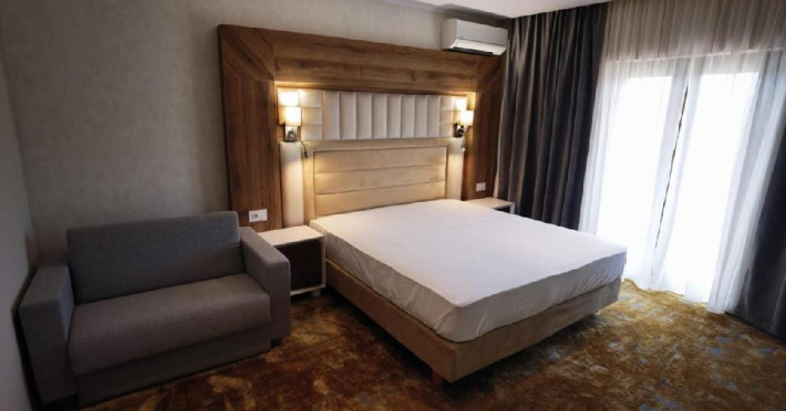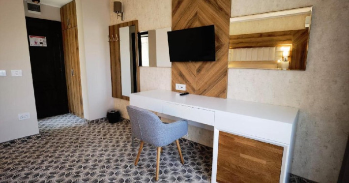 - 3 apartamente - suprafata de 45 mp - dormitor cu pat matrimonial si living cu canapanea extensibila, balcon, aer conditionat, tv cu ecran plat, terasa, minibar, halat de baie, grup sanitar cu cabina de dus.