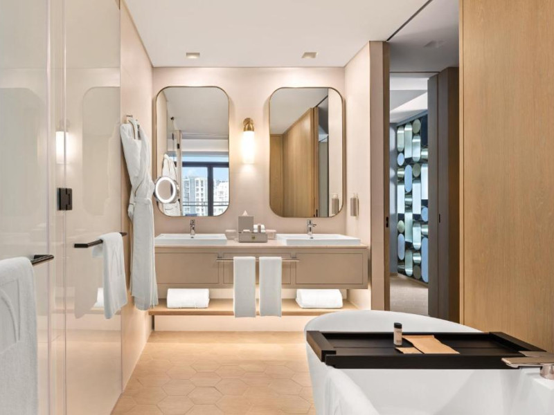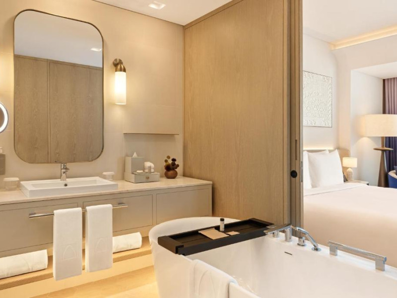 Hotelul va pune la dispoziție oaspeților camere cu aer condiționat, birou, ceainic, minibar, cutie de valori, TV cu ecran plat și baie privată cu duș. Toate camerele de la Palace Dubai Creek Harbour sunt dotate cu uscător de păr și iPad.