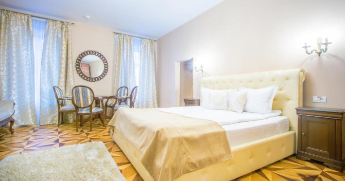 Probabil cele mai mari camere duble pe care le vei gasi in centrul orasului, camerele King sunt de departe cele mai solicitate din intregul hotel. Pe langa decorul aparte, mobilierul atent selectionat si dotarile moderene, aceste camere se remarca prin parchetul cu intarsii cu 4 tipuri de lemn (fag, stejar, nuc, trandafir) si sobele cu placi de teracota pictata. Patul king size, canapeaua, fotoliile, masa si scaunele stil completeaza atmosfera de sfarsit de secol 19 ce domina intreg spatiul. Pentru aceia care isi doresc rasfatul unui rege aceasta camera este alegerea ideala, oferind o priveliste superba asupra Pietei Sfatului si muntelui Tampa. Aceste camere sunt situate la etajul 1 si 2.