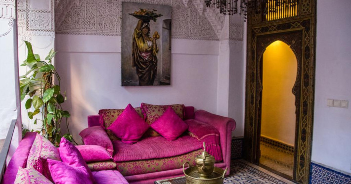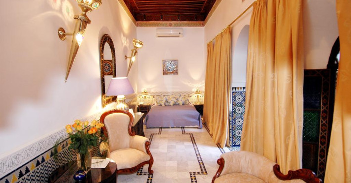 There is a 24h shuttle between the hotel and the airport 24h a day. The hotel Riad Palais Sebban is equipped with a 24h reception, Wi-Fi, a shop, parking spaces as well as a TV lounge with satellite TV. In the outdoor area of the property you will find a garden as well as a pool (open all year), where sun loungers and pool towels are available for free. Furthermore, you can relax outdoors on the sun terrace. You can store your valuables in the safe, and your luggage in the hotel`s storage room. For your entertainment, the hotel offers a library/reading room. For your comfort there is a concierge service. Pets like cats and dogs are allowed in the hotel (on request) . Catering For the meals, there are a buffet restaurant with terrace and the pool bar. The drinks menu of the hotel includes water, soft drinks, coffee and tea and wine. Sports & Leisure The wellness area offers massages.There is a 24h shuttle between the hotel and the airport 24h a day. The hotel Riad Palais Sebban is equipped with a 24h reception, Wi-Fi, a shop, parking spaces as well as a TV lounge with satellite TV. In the outdoor area of the property you will find a garden as well as a pool (open all year), where sun loungers and pool towels are available for free. Furthermore, you can relax outdoors on the sun terrace. You can store your valuables in the safe, and your luggage in the hotel`s storage room. For your entertainment, the hotel offers a library/reading room. For your comfort there is a concierge service. Pets like cats and dogs are allowed in the hotel (on request) . Catering For the meals, there are a buffet restaurant with terrace and the pool bar. The drinks menu of the hotel includes water, soft drinks, coffee and tea and wine. Sports & Leisure The wellness area offers massages.