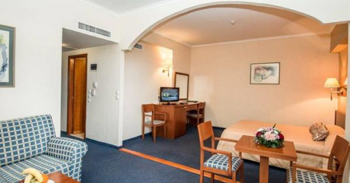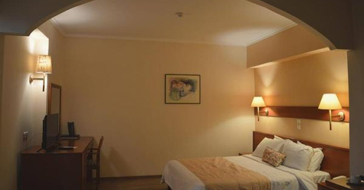 Luxuriously furnished and very comfortable rooms with sea or mountain view, Individually controlled A/C, Central Heating, Direct Dial digital telephone calls, 24hrs room service Remote Control Satellite TV/Video & Music Channels, In- room safe deposit box, Bathrooms with hair dryers and make-up mirrors, Fully Stocked Mini-bar, 2 Suites with safes and cordless phones. Facilities for Disabled persons VIP Lounge with TV and Video, Lounge with TV, Air-condition, Cocktail Bar, Greek and International Cuisine Restaurant, Conference rooms with audio visual support, Internet corner with email, word, excel, copies, fax services, Laundry service, 24hrs Reception, American Breakfast Room Service, In-room dinner from the a la carte restaurant, Protected luggage area, Newspapers. Sandy and Shingle beaches with umbrellas & sunbeds, Tennis Courts, Volley Ball Court, Children's Playground, Watersports Center - 4kmFull description