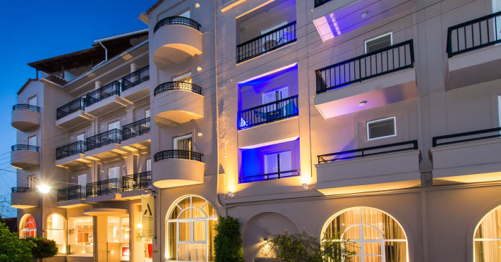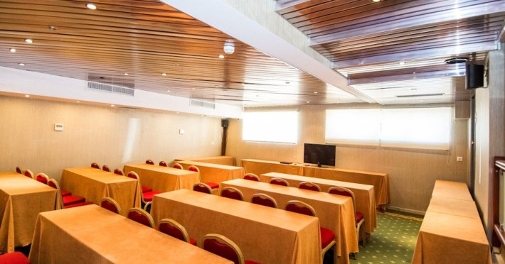 Beautiful views of the Ionian Sea and Zante’s hills await guests at this hotel, located in the centre of Zakynthos Town, yet only 50 metres from the beach. Providing guests with an ideal base for their stay on the island, Hotel Palatino offers 75 luxuriously furnished suites and guest rooms. Start the day with breakfast on your balcony. While you sip a cup of coffee, your partner can read a newspaper while soaking up the morning sun. Families with children can make use of the playground or enjoy a game of tennis. Other activities, such as tours of the island or business meetings, can be arranged by Palantino's attentive reception staff, which is at your service 24 hours per day. Our conference center consists of 3 rooms and can accommodate meetings and events for up to 300 people. It is luxurious, air-conditioned with all the media facilities you may need for the conference. For extra convenience the conference center has its own entrance. Hotel Palatino offers a perfect combination of hospitality for conferences or working lunches with quality accommodation, comfortable rooms and friendly service from our experienced staff. OPEN ALL YEAR AROUND